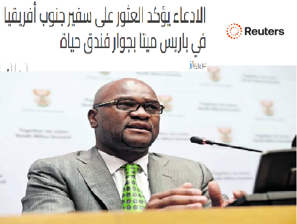 في حادثة غامضة تزامنت مع تصاعد التوترات إثر دعم دولي كبير للقضية الفلسطينية، أفادت وكالة رويترز بأنه عُثر صباح الثلاثاء، على سفير جنوب إفريقيا لدى فرنسا جثةً هامدةً أسفلَ برج فندق “حياة ريجنسي” في منطقة بورت مايو بالعاصمة الفرنسية باريس، بعد (سقوطه) من الطابق الـ 22.