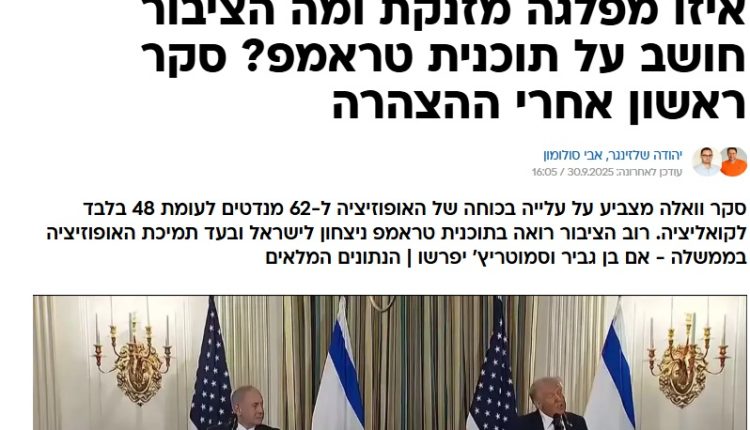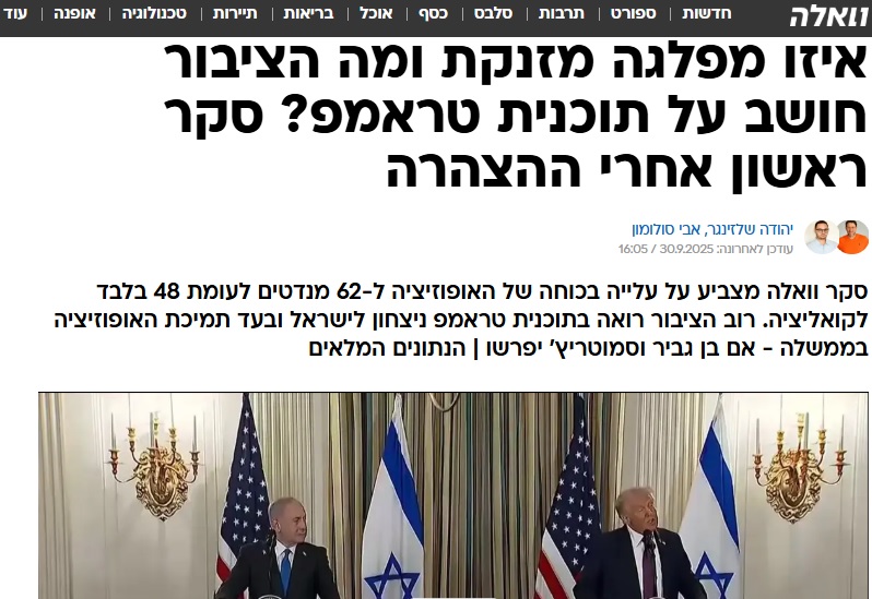 60 % من ناخبي الائتلاف الحاكم الإسرائيلي يعتبرون الخطة انتصارًا لـ(إسرائيل)