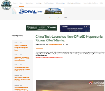 قال موقع “آرمي ريكوجنيشن” أن الصين أطلقت صاروخها الجديد DF-26D ، وهو متغير يعتقد أنه يحمل رأسا حربيا تفوق سرعته سرعة الصوت .