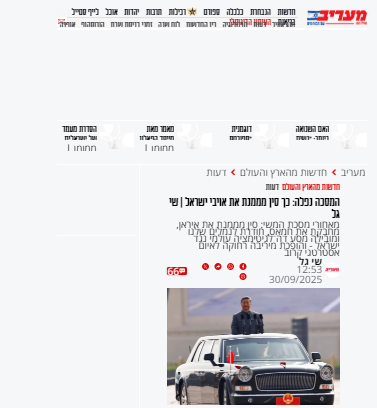 صحيفة معاريف : سقط القناع: هكذا تمول الصين أعداء إسرائيل ..!