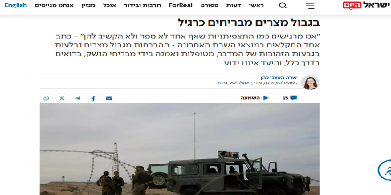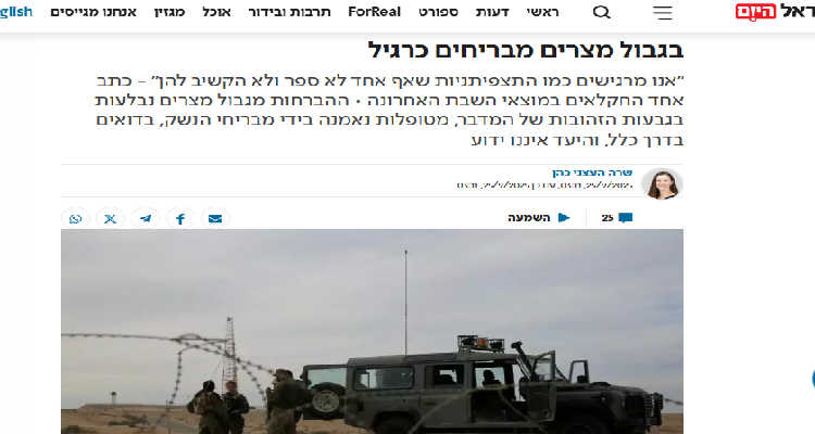 وفي مقال نشره موقع “إسرائيل هيوم” للكاتبة اليمينية سارة هعتسني كوهين، ادعت فيه أن الحدودَ الجنوبية للكَيان الغاصب باتت تشهد نشاطًا غير مسبوق لطائرات مسيّرة ثقيلة تُستخدم في تهريب الأسلحة، مشيرة إلى عبور عشرات الطائرات يوميًّا من سيناء إلى الداخل المحتلّ، وسط عجز تام للقوات الإسرائيلية عن التصدي لها.