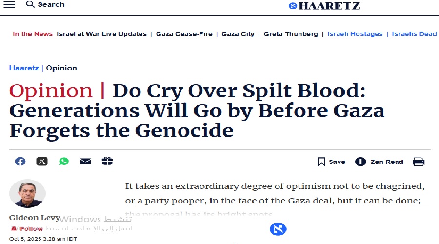 هآرتس العبرية: العالَم لن ينسى إبادةَ غزة والكارثة ستُروى جيلًا بعد جيل