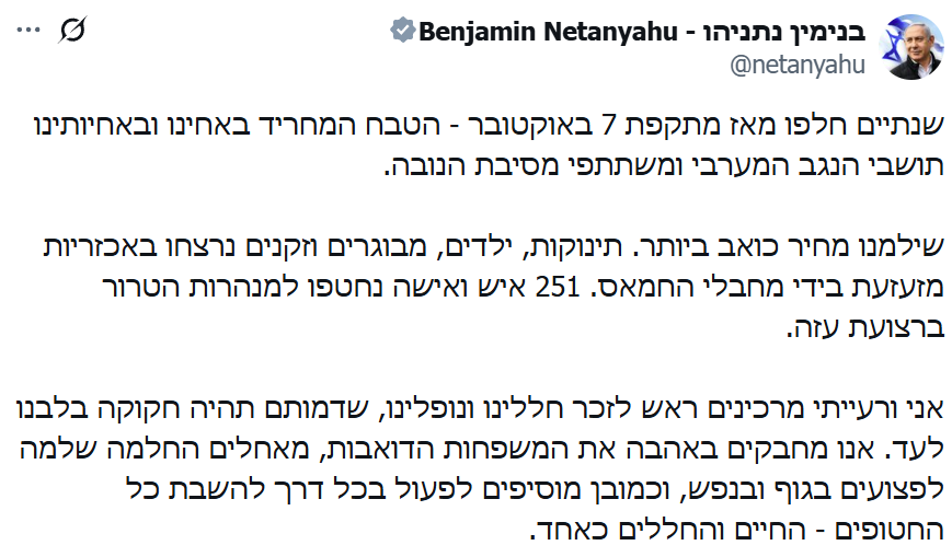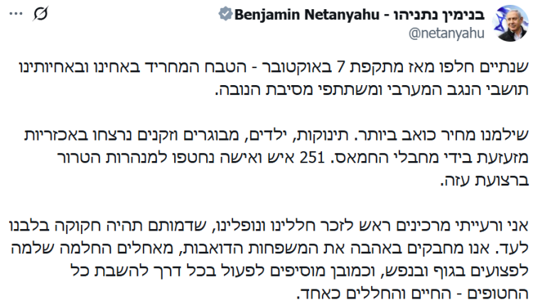 وجاءت تصريحات نتنياهو في الذكرى الثانية لعملية “طوفان الأقصى” وعشية اتّفاق غزة، متعهِّدًا بـ”ضمان بقاء (إسرائيل)” رغم التحديات التي تواجهها.