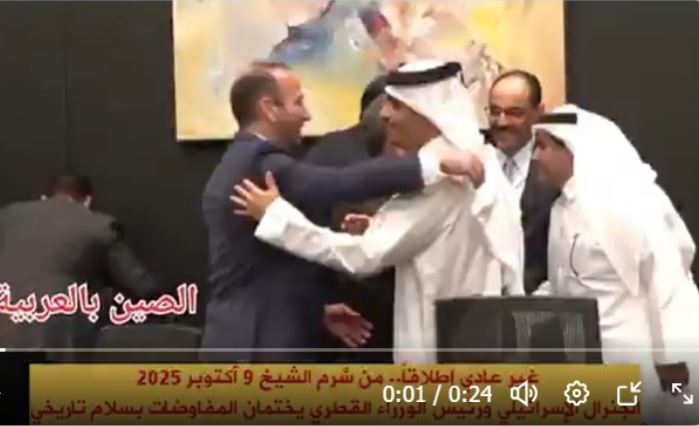 كالنار في الهشيم انتشرت صورةٌ مسرّبة من كواليس مفاوضات شرم الشيخ بشأن إنهاء الحرب في غزة، الخميس، ونالت اهتمام منصات التواصل الاجتماعي ووسائل الإعلام الدولية والإسرائيلية بالذات، بعد أن أظهرت لحظة عناق لافتة جمعت بين رئيس الوزراء القطري، محمد بن عبدالرحمن آل ثاني، وضابط الاستخبارات الإسرائيلي نيتسان ألون.