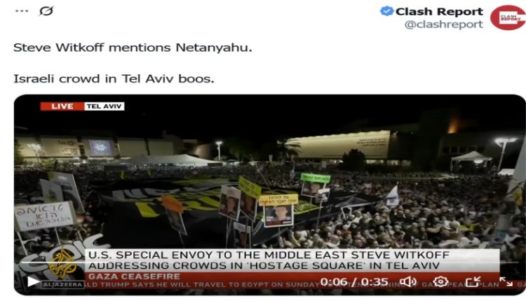 شهدت مدينةُ يافا الموصوفة احتلاليًّا (تل أبيب) مساءَ السبت، مشهدًا غيرَ مألوف خلال احتفال جماهيري باتّفاق وقف إطلاق النار بين الكيان الصهيوني وحركات المقاومة الفلسطينية، حَيثُ قاطع آلافُ الإسرائيليين كلمة المبعوث الأمريكي، ستيف ويتكوف –يهودي، يحمل أيضًا جنسية كَيان الاحتلال الصهيوني-، بصيحات استهجان فورَ ذكرِه اسم رئيس الوزراء بنيامين نتنياهو.