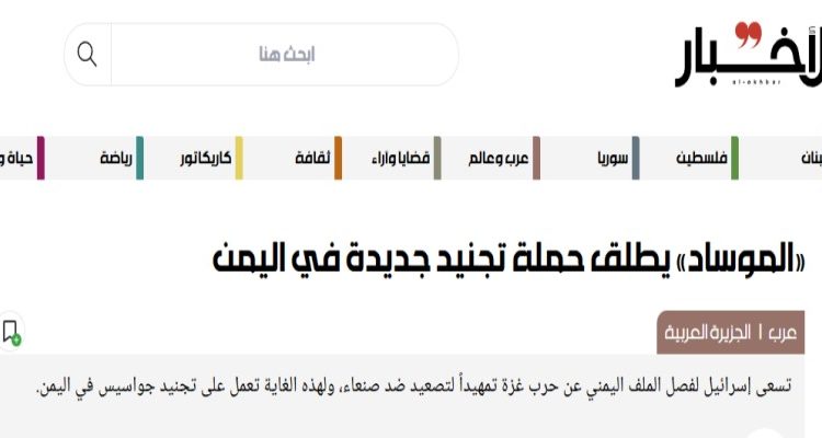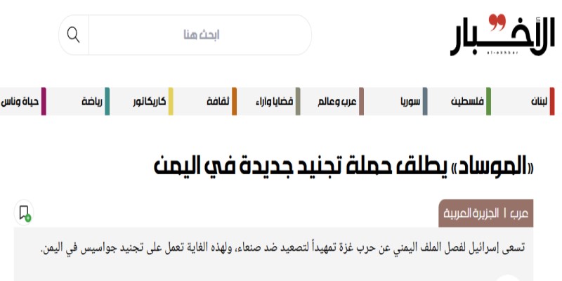 صحيفة عربية: «الموساد» يطلقُ حملةَ تجنيد في اليمن.. ومصادر في صنعاء تحذّر (تفاصيل)