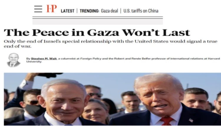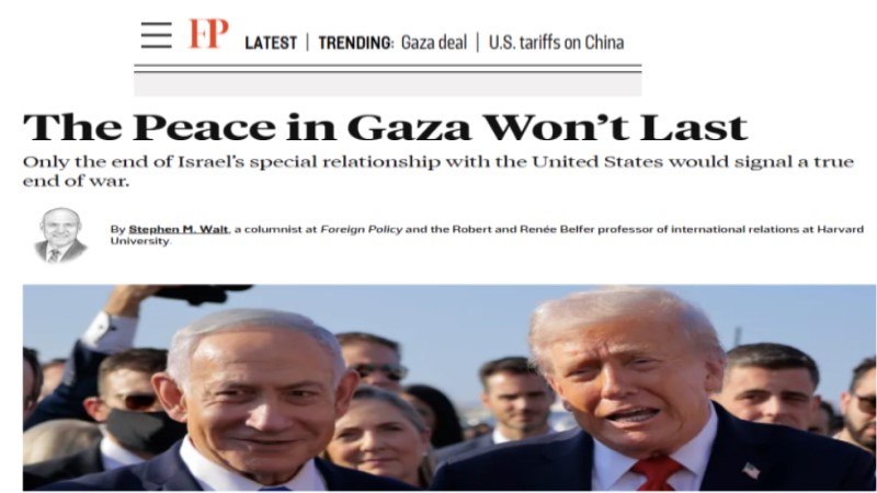 واختتم والت مقاله بالتأكيد على أن أي سلام دائم في غزة يتطلب تحولًا جذريًّا في طبيعة العلاقة بين واشنطن وتل أبيب، بحيث تتوقف الأولى عن منح الثانية دعما غير مشروط، وتبدأ في ممارسة ضغط سياسي جاد يفضي إلى حَـلّ واقعي وعادل للصراع.