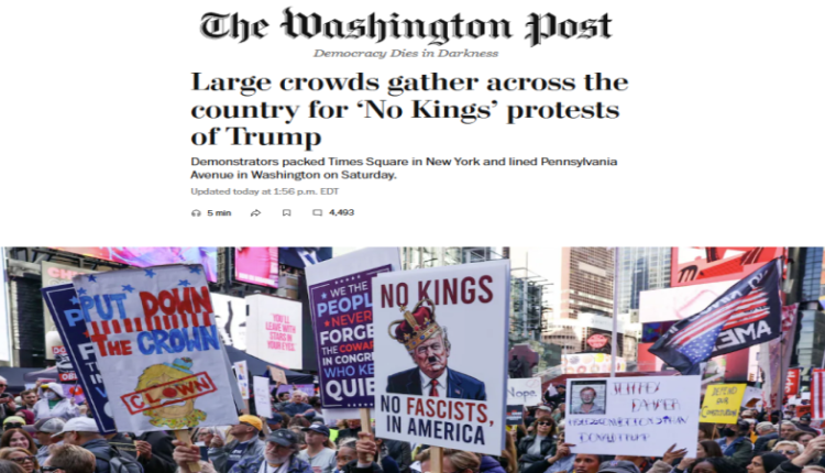أمريكا تشتعل: تظاهرات احتجاجية غير مسبوقة تحت شعار “لا ملوك” تجتاحُ عشرات الولايات رفضًا لسياسات ترامب
