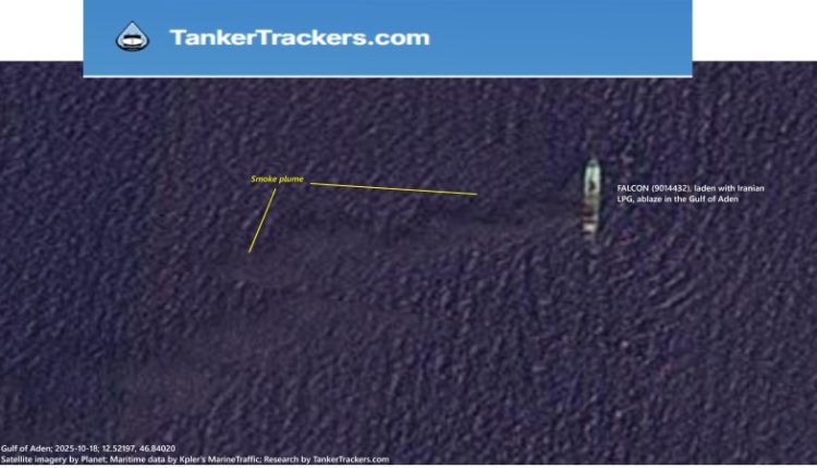 كشف موقع TankerTrackers المتخصص بتتبع حركة السفن، أن ناقلة الغاز المسال «فالكون» (9014432)، التي اندلعت فيها النيران اليوم في خليج عدن، كانت محمّلةً بشحنة من الغاز المسال الإيراني انطلقت من ميناء عسلوية في 25 سبتمبر 2025.