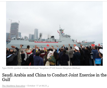موقع صيني: مناورات بحرية صينية سعودية خلال أكتوبر الجاري