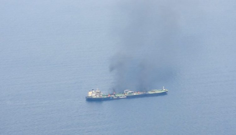 وقالت شركة أمبري للأمن البحري أن ناقلة نفط تحمل علم الكاميرون أصدرت نداء استغاثة عقب انفجار على متنها على بعد حوالي 60 ميلا بحريا جنوبي أبين باليمن
