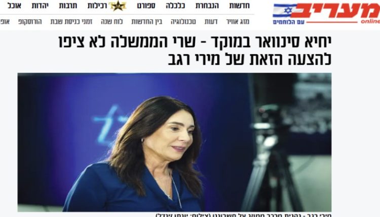 كشفت وزيرة النقل في حكومة الاحتلال الإسرائيلي ميري ريغيف عن اقتراحٍ صادمٍ قدّمته للمجلس الوزاري الأمني المصغّر (الكابينت)، يقضي بما يمكن أن يفعلوه بجثة رئيس المكتب السياسي لحركة «حماس» في غزة، الشهيد يحيى السنوار، وذلك لمنع الحركة –بحسب زعمها– من «استغلال دفنه كإنجاز رمزي».