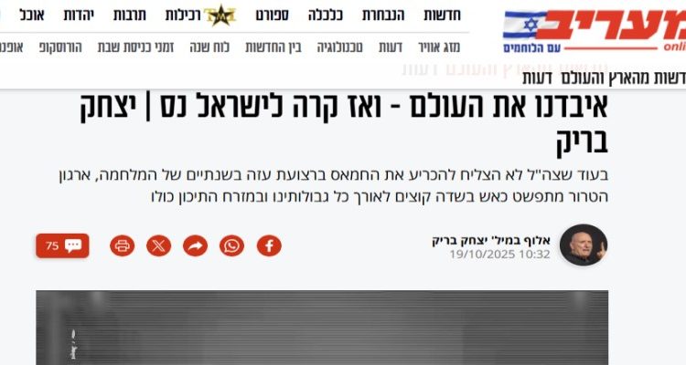 وأشَارَ بريك إلى أن نتنياهو، الذي تعهّد قبل توقيع الاتّفاق مع الرئيس الأمريكي دونالد ترامب بعدم إنهاء الحرب قبل “تدمير حماس بالكامل”، يجهل مدى انتشار الحركة ونفوذها في دول الجوار وحتى بعض الدول الغربية، معتبرًا أن تحقيق الانهيار الكامل لحماس داخل غزة أمر “مستحيل”.