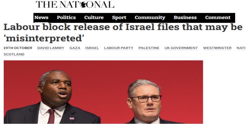 كشفت صحيفة صنداي ناشيونال الإسكتلندية أن الحكومة البريطانية، إلى جانب حزب العمال، رفضت نشر أية وثائق تتعلق باجتماع سري عُقد بين وزير الخارجية السابق ديفيد لامي ونظيره الإسرائيلي جدعون ساعر؛ بذريعة أن نشرها «قد يؤدي إلى سوء تفسيرها ويضر بالعلاقات مع (إسرائيل)».