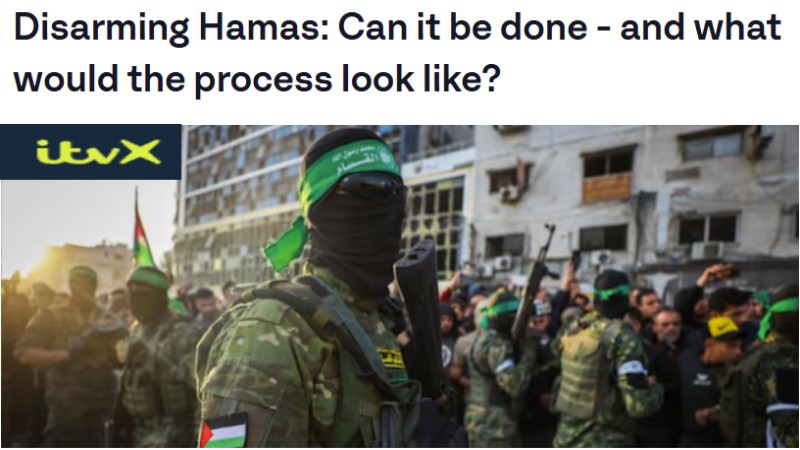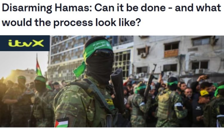 وأفَادت قناة ITV News البريطانية في تقريرها بأن حركةَ حماس كرّرت مرارًا موقفَها الرافض للتفاوض على سلاحها أَو تسليمه، في حين قد تعيق تنفيذ الاتّفاق وفق تصوّر الرئيس الأمريكي السابق دونالد ترامب؛ إذ وضع شرطًا مركزيًّا يقوم على تخلي الحراك عن سلاحها وتسليم السلطة، وهو ما رفضته الحركة بشكل قاطع وتبناه كذلك رئيس الوزراء الإسرائيلي بنيامين نتنياهو الذي قال: إن “الحرب لن تنتهي فعليًّا إلا بتفكيك حماس بالكامل”.