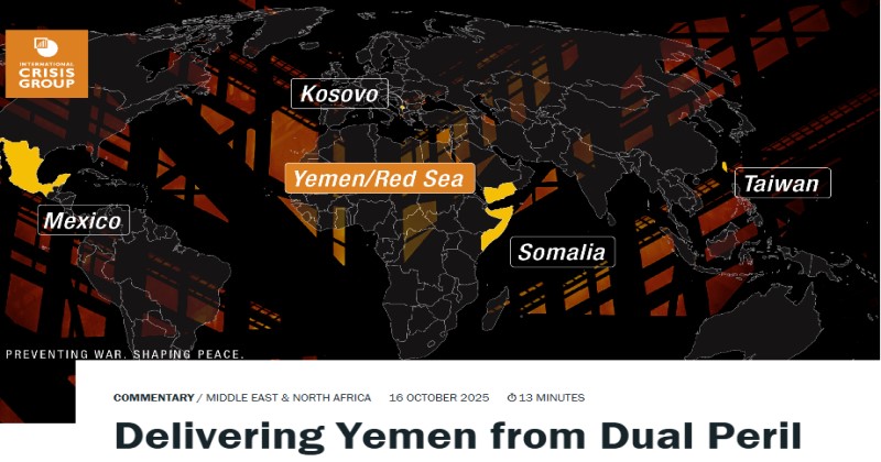 وشدّد التقرير على أن الاستقرار الدائم في البحر الأحمر لا يمكن أن يتحقّق دون حَـلّ شامل للحرب في اليمن، بما في ذلك أبعادها الإقليمية – وهو ما سبق أن اعترف به الاتّحاد الأُورُوبي في استنتاجات مجلسه في مايو 2025. ودعا إلى العودة إلى “خارطة الطريق السعوديّة–اليمنية” التي تشمل وقفًا شاملًا لإطلاق النار، ودفع رواتب الموظفين، واستئناف صادرات النفط، وتهيئة بيئة لمحادثات يمنية–يمنية شاملة تحت رعاية الأمم المتحدة.