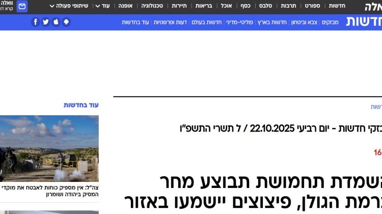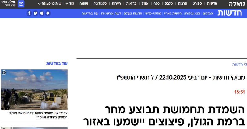 أعلن مجلس الجولان الإقليمي، عبر موقع «واللا» العبري، اليوم (الأربعاء) أنّه سيتم غدًا الخميس تنفيذُ عملية إتلاف ذخائر في ميدان الرماية بمعسكر نفح (فرقة 210).