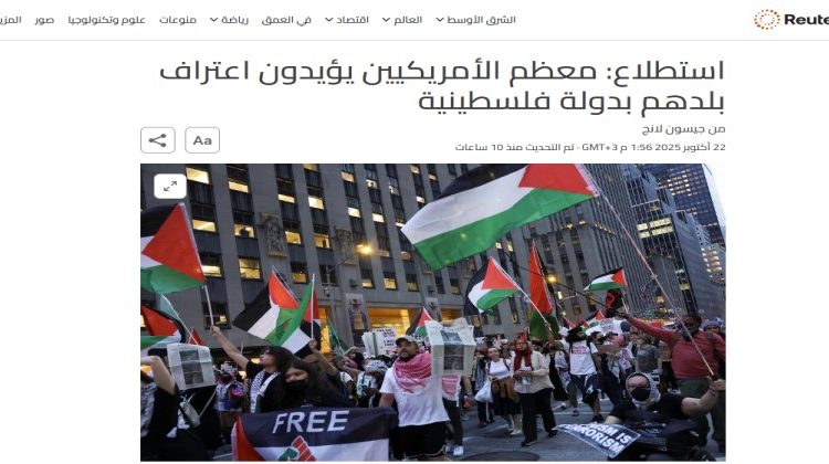استطلاع لـ”رويترز”: أغلبية الأمريكيين تؤيد اعتراف واشنطن بدولة فلسطينية