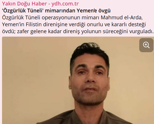أشاد قائد المقاومة الفلسطينية المفرج عنه ومهندس “عملية نفق الحرية” محمود العارضة بالشعب اليمني وثمن موقف اليمن الداعم للقضية الفلسطينية والمقاومة في غزة.