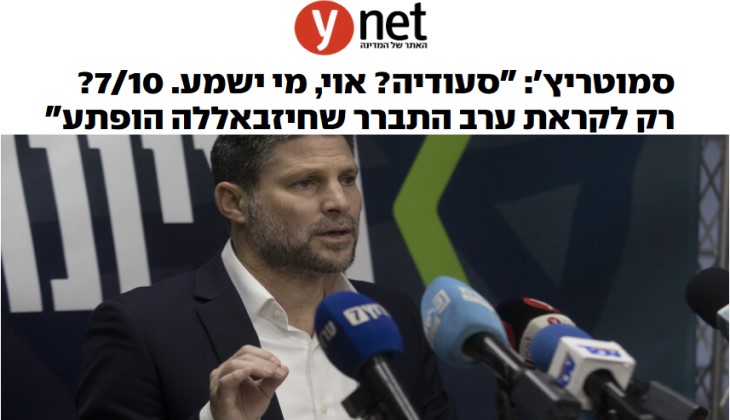 وخلال اجتماع كتلة حزبه، قال سموتريتش ساخرًا: “حسنًا، لقد أهنّا السعوديّين، أين المشكلة يا ترى؟ من سيستمع؟” مضيفًا أن “السعوديّين يريدون إقامة دولة إرهابية هنا – لكن لا بأس، هذا مسموح لهم”.