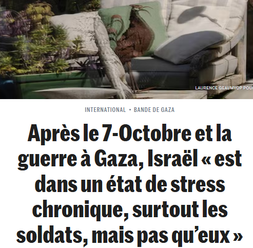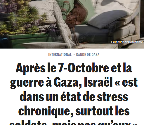 كشف تحقيق لصحيفة لوموند الفرنسية أن أكثر من 19 ألف جندي إسرائيلي يخضعون حالياً لـ”علاج نفسي” من اضطرابات ما بعد الصدمة ، نتيجة ما رأوه من أهوال وجرائم في غزة .