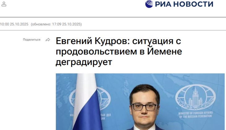 ونقلت وكالة ريا نوفوستي الرسمية عن السفير الروسي لدى اليمن، إيفغيني كودروف، قوله إنه يعملُ حَـاليًّا على “استعادة الوجود الدبلوماسي لبلاده في اليمن وتنشيط العلاقات الثنائية”، مُشيرًا إلى أن موسكو تسعى إلى “بناء علاقة أعمق وأكثر فعالية” مع اليمن خلال المرحلة المقبلة.
