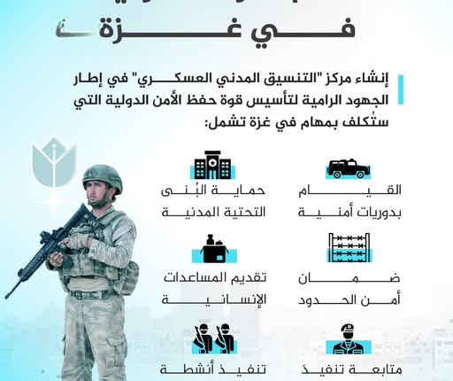 وأعلن ترامب عن خطته لإنهاء الحرب في غزة في 29 سبتمبر، قائلاً إنّ من المتوقع أن تنتشر قوة الاستقرار الدولية (ISF) “فورًا” لتدريب الشرطة الفلسطينية، وتأمين الحدود مع إسرائيل ومصر، ومنع تدفق الذخيرة، وتمكين انسحاب القوات الإسرائيلية من غزة.