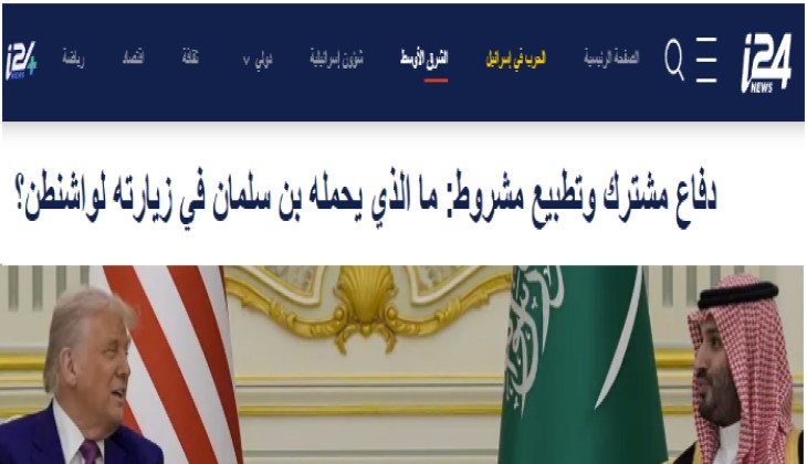 ووفق قناة أي 24 نيوز الإسرائيلية -وفي ظل التصعيد اليمني المُطالِب برَدِّ الحقوق المنهوبة سعوديًّا خلال فترة العدوان على اليمن وتحصيل الإيرادات إلى البنك الأهلي في الرياض- فإن لدى ولي العهد السعوديّ “أهدافًا أكثر إلحاحًا” خلال زيارته المرتقَبة، تتجاوز مسألة إقامة علاقات علنية مع الاحتلال أهمها الحصول على وثيقة دفاع مشترك تحمي النظام السعوديّ مما يعتبرها مهدّدات، لتكون هذه الوثيقة شبيهةً بما حصلت عليها قطر مؤخّرًا.