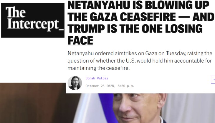 هذا ما طرحه موقع “إنترسبت” (The Intercept) الأمريكي الذي نشر مقالًا تحليليًّا للصحفي جوناه فالديز، أكّـد فيه أن تجدد الغارات الإسرائيلية يحرِجُ ترامب ويجعله تفقد “ماء وجهه”.