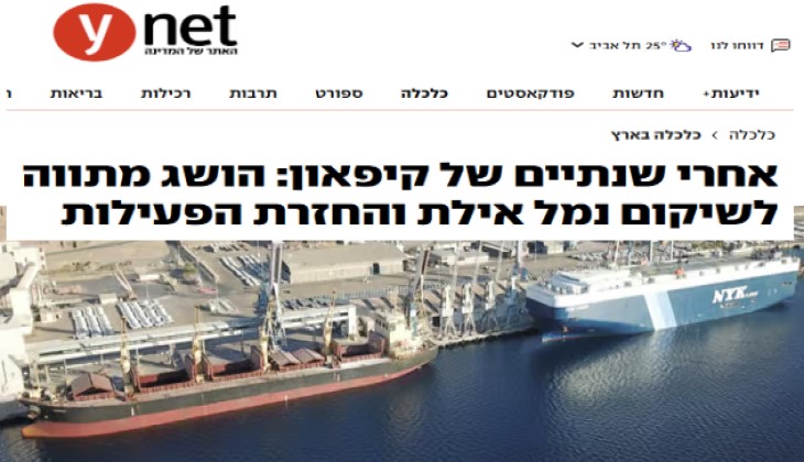 وقال جولبر في تصريحات صحفية نشرها موقع واي نت العبري إن الميناء بحاجة إلى “صورة نصر” لإعادة تشغيله واستعادة الثقة، مُشيرًا إلى أن السفن الصينية كانت تصل إلى الميناء بانتظام قبل الحرب، لكنه دعا إلى عودتها بشكل عاجل اليوم.