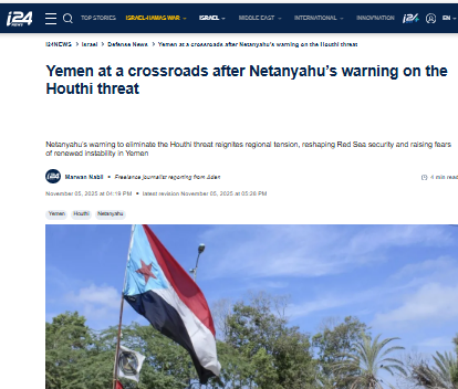 قناة صهيونية: اليمن على مفترق طرق بعد تحذير نتنياهو من تهديد “الحوثيين”