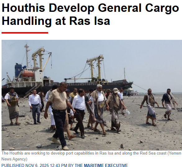 قال موقع “ذا ماريتايم إكزكيوتيف” المتخصص في شؤون الملاحة والشحن البحري أن صور الأقمار الصناعية التي التقطت فوق منطقة رأس عيسى الساحلية في اليمن في 5 نوفمبر تشير إلى أن الحوثيين وسعوا في الأسابيع الأخيرة قدرتهم على التعامل مع البضائع العامة.
