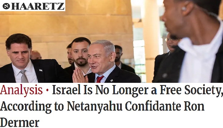 وقال ديرمر، الذي يُعد من أبرز العقول الاستراتيجية في معسكر نتنياهو، إن (إسرائيل) “تتدهور”، في ظل تراجع غير مسبوق لحرية الرأي والتعبير، وتنامي حملات القمع ضد المنتقدين والمعارضين للسياسات الحكومية، لا سِـيَّـما في سياق الحرب على غزة والاحتجاجات الداخلية.