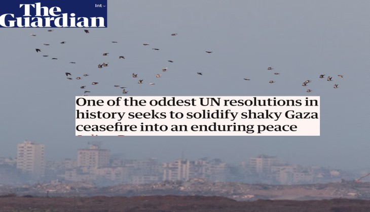 المصدر: https://www.theguardian.com/world/2025/nov/18/one-of-the-oddest-un-resolutions-in-history-seeks-to-solidify-shaky-gaza-ceasefire-into-an-enduring-peace