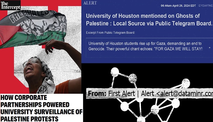 وبحسب التقرير، تعاقدت جامعة هيوستن مع شركة Dataminr المتخصصة في الذكاء الاصطناعي لجمع معلومات مفتوحة المصدر عن نشاط الطلاب، من خلال أدَاة “First Alert” التي تعتمد على خوارزميات ترصد المنشورات ورسائل الدردشة وبيانات مواقع التواصل الاجتماعي؛ وأعاد طلب للسجلات العامة الكشف عن أكثر من 900 رسالة تنبيه من الأدَاة أرسلت إلى مسؤولي الجامعة في نيسان/أبريل 2024 وحده.