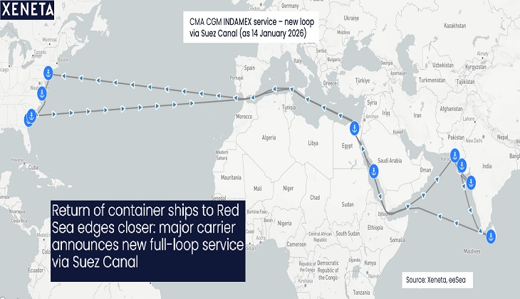 يُذكر أن عودة خط “إنداميكس” عبر قناة السويس ستحرّر سفينتين كانتا تُستخدمان في المسار البديل الأطول؛ مما سيسهم في زيادة الطاقة الاستيعابية المتاحة في سوق الشحن العالمي الذي يعاني بالفعل من فائض في العرض.