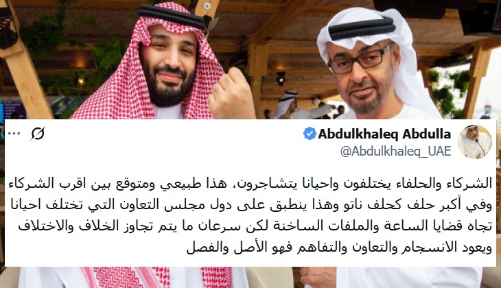 ويرى مراقبون أن تدوينة عبد الله، التي نشرها على مواقع التواصل، تمثل محاولةً لاحتواء المشهد وتطبيعه؛ إذ عَــــدَّ “اختلاف الشركاء وتشاجرهم” أمرًا طبيعيًّا ومتوقعًا، مشبّهًا العلاقات الخليجية بالتكتلات الدولية الكبرى مثل حلف “الناتو”.