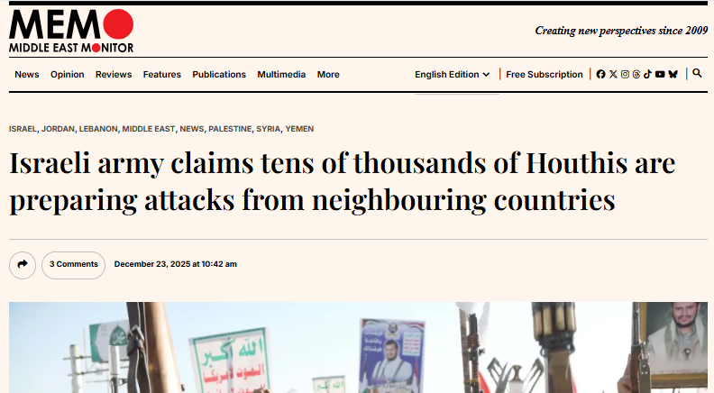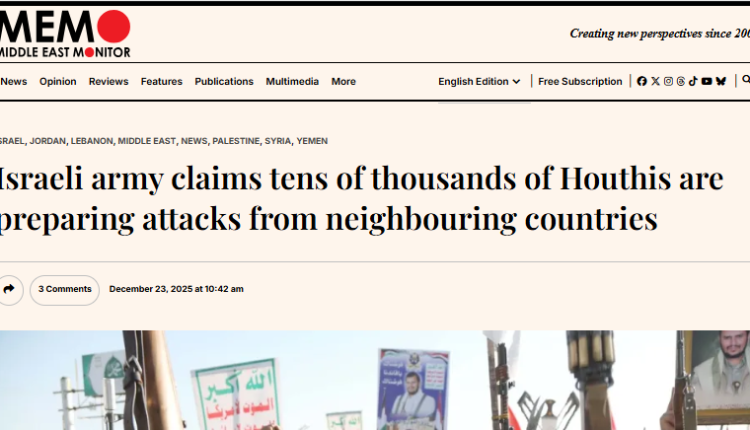 ونقلت صحيفة ميدل ايست مونيتور مزاعم لجيش العدو الإسرائيلي بأن “الحوثيين” ليسوا موجودين في اليمن فقط، بل ينتشر عشرات الآلاف منهم في العراق ولبنان والأردن وسوريا.
