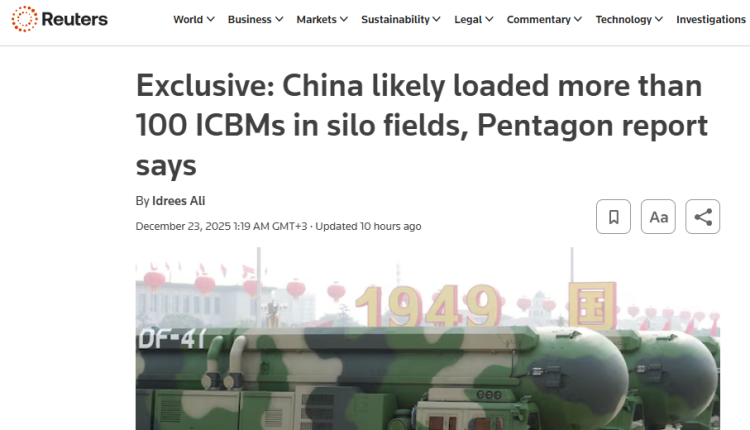 رويترز عن البنتاجون: الصين تنصب أكثر من 100 صاروخ عابر للقارات