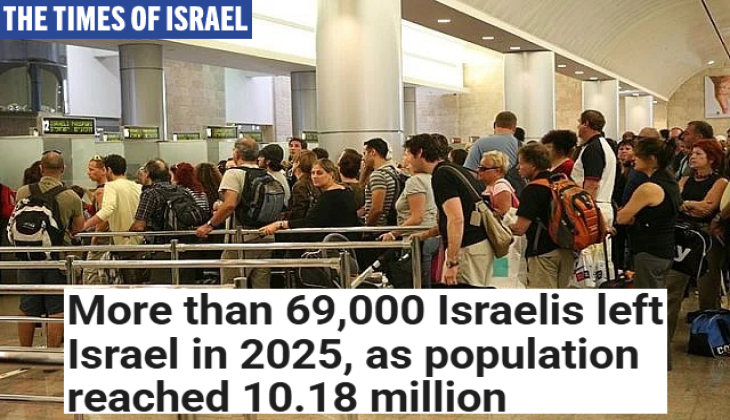 وتؤكّـد أن كيان الاحتلال للعام الثاني على التوالي، سجلَ “هجرة سلبية” حيث بلغت الخسارة الصافية في ميزان الهجرة حوالي 20,000 شخص (بعد خصم القادمين الجدد والعائدين)؛ ما يؤكّـد أن الكيان بات بيئة طاردة لسكانها.