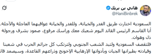 في اقوى ردود فعل الإمارات تجاه تصاعد إجراءات السعودية بحق أذرعها في جنوب اليمن قال نائب رئيس المجلس الانتقالي هاني بن بريك أن “السعودية اختارت طريق الغدر والخيانة، وللغدر والخيانة عواقبهما العاجلة والآجلة”.