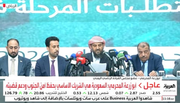 وفي كلمة افتتاح اللقاء التشاوري الذي نقلتها “قناة العربية” السعودية قال عضو مجلس العليمي أبو زرعة المحرمي إن “الحوار الجنوبي الذي سترعاه المملكة يمثّل مسار آمن ومضمون لاستعادة دولة الجنوب عبر هذا المسار السياسي”.