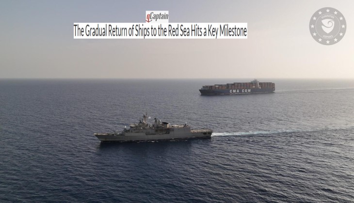 أفاد موقع جي كابتن نقلًا عن شركة «بلومبيرغ» ببدء مرحلة مفصلية في عودة حركة الشحن البحري إلى البحر الأحمر، بعد أكثرَ من عامين من تجنّب هذا الممر الحيوي.