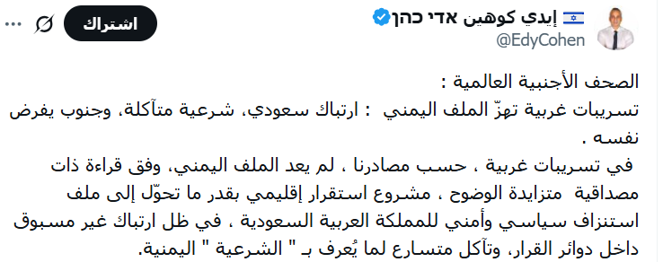 إن لم يكن إماراتياً فليكن سعودياً.. ترويج صهيوني للانفصال في اليمن