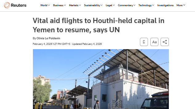رويترز: الأمم المتحدة تستأنف رحلاتها إلى العاصمة اليمنية صنعاء