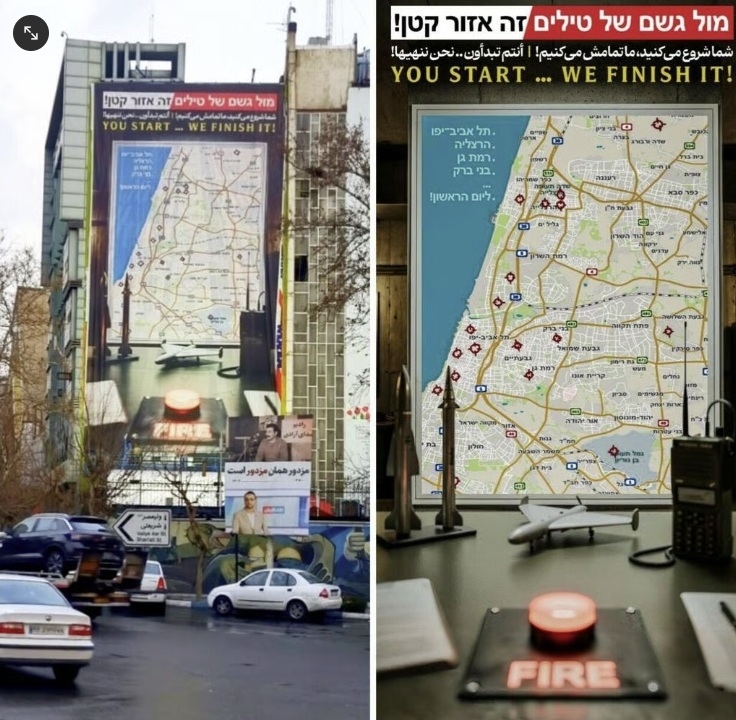 وتضمنت الجدارية، وفقاً لـ“قناة آي 24 العبرية” صورة لمنطقة غوش دان وسط “اسرائيل”، التي كانت هدفاً للجولة الأولى من الحرب وامطرتها إيران بأنواع متقدمة من الصواريخ المدمرة.