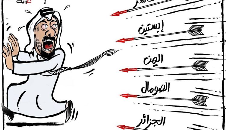 وكُتب على السهام كلمات “اليمن، الفاشر(السودان)، الصومال، الجزائر”، وهي الدولة العربية التي تورطت الإمارات في تخريبها وبث الفتنة والحروب فيها .