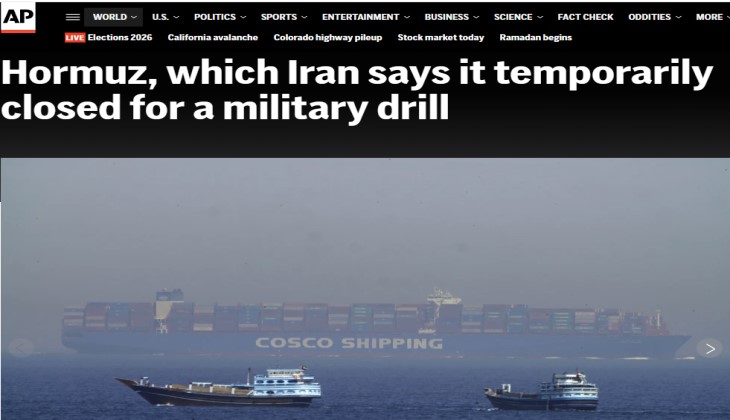 أفادت وكالة أسوشيتد برس الأمريكية بأن إيران أغلقت أجزاءً من مضيق هرمز، في إطار مناورات عسكرية بالذخيرة الحية، وشملت التدريبات الإيرانية عمليات إطلاق نار حي، رافقها تحذير رسمي للسفن العابرة في المنطقة.