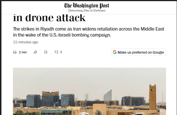 كشفت صحيفة واشنطن بوست، عن استهداف مقر الاستخبارات الأمريكية الـCIA في الرياض بشكل مباشر في الضربة التي طالت سفارة واشنطن في السعودية يوم أمس.