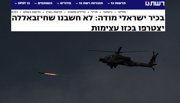 أقـــرَّ مسؤولٌ إسرائيلي رفيع المستوى في تصريحات نقلتها القناة الـ 13 العبرية بأن التقديرات الاستخباراتية والأمنية تجاه حزب الله كانت خاطئةً تمامًا، مؤكّـدًا أن الجيشَ الإسرائيلي لم يتوقع انخراطَ الحزب بهذه الكثافة والشدة في العمليات الحربية الأخيرة.